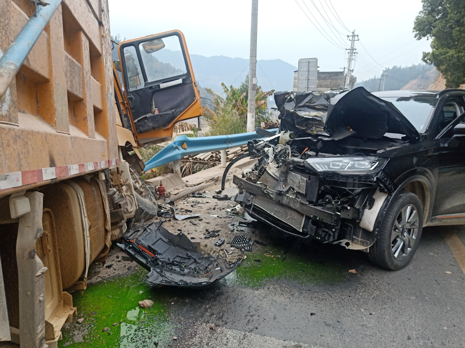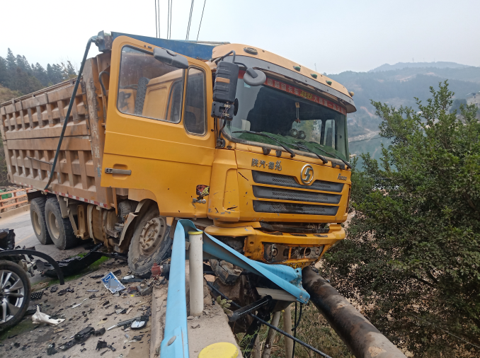 经查据悉,事发当日,吴某驾驶号牌为贵AB***0的重型自卸式货车拉载满满一车鹅卵石,沿从江县广成线行驶,准备前往从江县下江镇下货,当车辆行驶至事发路段时,方向盘突然失灵,车辆失控往左偏离,碰撞对向正常行驶的黑色越野车后,又撞向路边护栏,多亏护栏起了缓冲作用,失控货车才没有掉入百米陡壁......