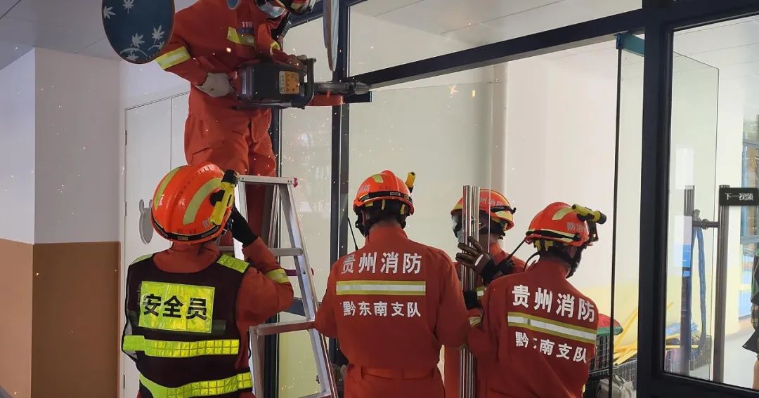 3月13日19时57分 三穗县消防救援大队 接到群众报警称 位于三穗县武笔街道 彩虹社区某门面处 一4岁小男孩头部被卡在玻璃门缝中 请求消防救援 接警后 三穗县消防救援大队 立即出动人员赶赴现场处置 到达现场后 经过观察 男孩头卡在了 仅有约10厘米的两扇玻璃门缝里 如不尽快救出 将会对小孩造成严重伤害 消防救援人员 在确认安全的前提下 利用绝缘剪将玻璃门门锁剪断 经过近10分钟地紧张救援 最终成功将孩子救出