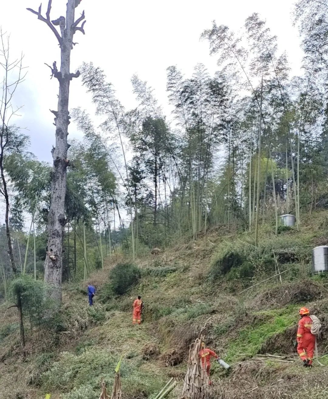 接警后,天柱县擎天路消防救援站迅速前往现场处置。 到场后,看到一棵大树倾斜在道路旁边,部分树根已露出地表。为尽快消除安全隐患,保障群众进出安全,消防救援人员立即在危树周围拉起警戒线,同时对危树周边群众进行劝离,维持好现场秩序。消防救援人员采取固定、削枝、分段切除等方式,经过五个多小时的高空作业,二十多米高的倾斜大树被移除,及时解决了安全隐患。 村寨缺水--及时达