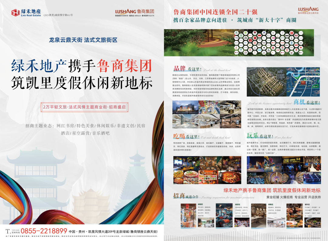 绿禾地产携手鲁商集团   筑凯里度假休闲新地标 黄金旺铺 火爆招商  专业运营 开店扶持 鲁商银座·龙泉云鼎天街正在构建 城市微度假轻文旅 品质生活乐园 更多精彩,我们未来见! 招商电话:0855-2218899