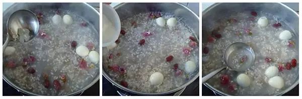 4、再选择煮粥功能,煮至熟透,将鸡蛋煮好去壳一同加入,再焖制数小时。5、吃的时候加入红糖。