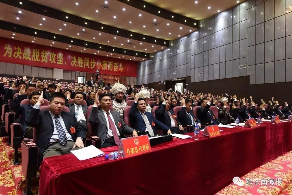 黔东南州第十四届人民代表大会第一次会议圆满完成各项议程,于2月18日下午在 凯里胜利闭幕。 大会主席团常务主席、执行主席李飞跃主持闭幕会。 大会执行主席冯仕文、耿生茂、文松波、杨昌鹏、罗亮权、梁承祥、陈英华、吴明、龙黔清、李正相、孟凡明、吴锡锋、姜庭桂、杨兰田在主席台前排就座。 384名代表出席会议,出席人数符合法定人数。 会议表决通过了州第十四届人民代表大会各专门委员会设置及组成人员名单。 会议表决通过了《黔东南苗族侗族自治州立法条例(草案)》、《黔东南苗族侗族自治州农村消防条例(草案)》。 会议经表决,通过了《关于政府工作报告的决议(草案)》、《关于黔东南州2016年国民经济和社会发展计划执行情况报告与2017年国民经济和社会发展计划的决议(草案)》、《关于黔东南州2016年全州和州本级财政预算执行情况报告及2017年全州和州本级财政预算的决议(草案)》、《关于黔东南州第十三届人大常委会工作报告的决议(草案)》、《关于黔东南州中级人民法院工作报告的决议(草案)》、《关于黔东南州人民检察院工作报告的决议(草案)》。 新当选的州人大常委会主任耿生茂在讲话中说,会议期间,各位代表依法选举产生了州第十四届人民代表大会常务委员会组成人员,选举我为州人大常委会主任,并产生了新一届州人大常委会组成人员。今后五年,州十四届人大常委会将认真贯彻落实州第十次党代会精神,认真落实州第十四届人大一次会议提出的各项任务,坚持党的领导、人民当家作主和依法治国的有机统一,在新的历史时期,走好新的长征路,决心以起步就是冲刺、开局就是决战的精神状态,奋力攻坚,开拓进取,用我们勤劳的双手谱写实现中国梦的黔东南新篇章,为建设“大美黔东南”而努力奋斗。 新当选的州人民政府州长冯仕文在讲话中说,这次会议选举我担任州长,我深切地感受到,每一张选票都承载着全州人民的信任和重托;每一次掌声,都传递着全州人民的深情和鞭策;每一双目光,都凝聚着全州人民的期待和向往。当前,全州正处于一个政治生态风清气正、经济发展生机勃勃、民族文化风行天下、干部群众精气十足的最好发展时期。今后五年是全州加速发展、缩小差距的黄金期,抢抓机遇、后发赶超的冲刺期。我将与州政府班子成员一道,在州委的领导下,在州人大及其常委会、州政协的监督支持下,忠于职守、夙夜在公,紧紧围绕“决战脱贫攻坚、决胜同步小康”总目标,奋力走出一条创新、协调、绿色、开放、共享的黔东南发展新路,大力创建国内外知名民族文化旅游目的地,努力建设一个经济强百姓富生态美的大美黔东南。 会议各项议程完成后,省人大常委会副主任、州委书记李飞跃作了重要讲话。李飞跃说,会议期间,各位代表以高度的政治责任感和强烈的历史使命感,依法履行职责,积极建言献策,共商发展大计,充分体现了尽责履职的责任担当、情系人民的赤诚情怀、开拓进取的精神风貌。大会开得很成功,绘出了好蓝图、选出了好干部、配出了好班子、换出了好面貌,是一次民主团结、求实奋进的大会,是一次提神鼓劲、凝聚共识的大会,是一次承上启下、继往开来的大会,达到了统一思想、坚定信心、明确任务、凝聚力量的目的。 李飞跃指出,党的十八大以来,以习近平同志为核心的党中央提出了一系列治国理政新理念新思想新战略,为我们做好各项工作指明了方向、提供了遵循。当前,黔东南正处于摆脱贫困的攻坚期、改革开放的机遇期、同步小康的关键期,天时、地利、人和,心齐、气顺、劲足,正是撸起袖子加油干、迈开步子加快赶的大好时机。全州上下要深入学习贯彻习近平总书记系列重要讲话精神,深入践行五大新发展理念,盯住既定目标不放松,扭住战略重点持续干,凝心聚力建设大美黔东南,推动发展新跨越。 李飞跃强调,建设大美黔东南、推动发展新跨越,必须切实增强“四个意识”始终坚定正确政治方向;必须牢固树立和深入践行五大新发展理念;必须坚持以人民为中心的发展思想;必须坚持改革创新激发全社会的创造活力;必须发扬敢闯新路、敢于突破、敢于胜利的“黔东南精神”构筑精神高地;必须全面从严治党构建良好政治生态。 李飞跃强调,坚持和完善人民代表大会制度是我国社会主义政治文明建设最为重要的内容。全州各级人大及其常委会要适应新形势新任务的要求,进一步加强自身建设,坚定不移地坚持党的领导、人民当家作主、依法治州的有机统一,更好地把人大工作同经济社会发展大局紧密结合起来,充分发挥地方国家权力机关的重要作用。 李飞跃号召,让我们更加紧密地团结在以习近平同志为核心的党中央周围,高举中国特色社会主义伟大旗帜,深入学习贯彻习近平总书记系列重要讲话精神,不忘初心、继续前进,牢记使命、不负重托,履职尽责、担当实干,以优异成绩迎接党的十九大和省第十二次党代会胜利召开。 李飞跃最后宣布,黔东南州第十四届人民代表大会第一次会议闭幕。 在主席台就座的还有:黄兴文、张定超、张淼、潘亮、马磊、贺代宏、潘玉凤、蒋先和、刘辉、陈应勇、肖明龙、吴坦、江朝伦、胡国珍、吴智贤、龙世勇、刘晓春、唐斌、杨政宇、袁尚勇、彭世平、吴春、姜学东、杨秀锡、王之政、邓锦光、王四新、陈继忠、张恩莲、邱兴