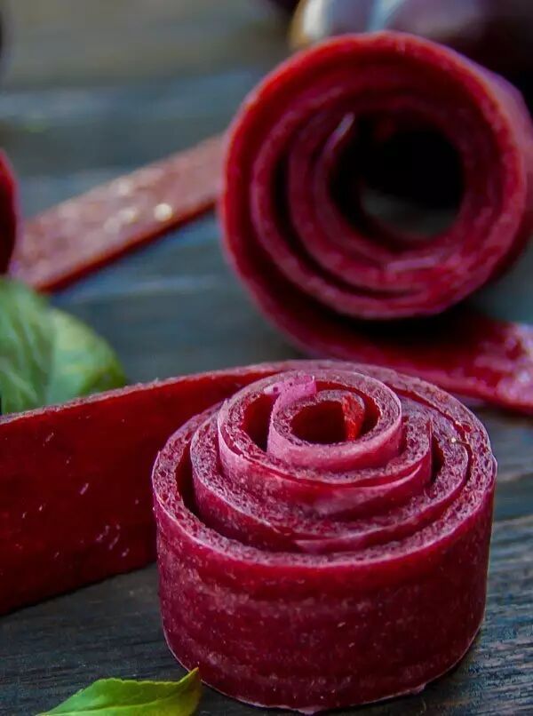 步 骤: 1 、李子洗净去核,烤箱预热400度。 2、 放入烤箱,烘烤20分钟。 3、 将李子从烤箱中取出,自然冷却。 4 、放入搅拌机中搅拌成果浆,放入干燥的不锈钢盆中。 5 、根据个人口味加入白砂糖,搅拌均匀。 6、 均匀倒入铺了烘焙纸的烤盘中。 7 、放入140度的烤箱,烘烤20分钟左右,直至呈现固态,用刀划开,就可以卷起来享用啦。