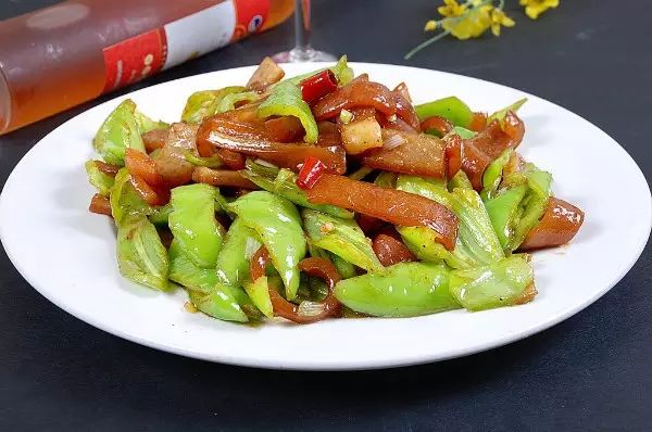 1、准备猪皮适量,把猪皮上的毛拔干净,然后在锅里煮五分钟。 2、捞出晾一下把猪皮内侧的油脂去掉。 3、然后再整体的刮一下,要把油脂彻底清理干净。 4、处理好切成条。 5、再把猪皮条放进锅里煮半个小时,锅中放盐,葱姜干辣椒,生抽,花椒,八角,料酒。 6、煮好以后把猪皮条捞出备用。 7、把尖椒切丝备用。 8、起炒锅放花生油,放花椒八角爆香,再放入葱姜干辣椒爆香。 9、然后放入猪皮条。 10、放少许盐,生抽煸炒。 11、然后放入尖椒翻炒均匀关火,关火以后放少许鸡精和香油即可。 12、出锅装盘。