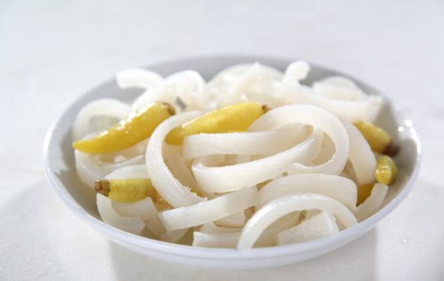 1、准备猪皮,将猪皮洗干净。 2、把猪皮放入锅中煮四分钟捞出来。 3、煮好的猪皮用刀刮掉多余的油和毛,切成条状。 4、葱切成段,姜切成片。 5、锅中添水,开大火将切好的猪皮放入锅中,然后放入葱姜蒜,八角,桂皮粉,白芷,料酒一起煮三十分钟。 6、在煮猪皮的过程中,泡椒和小米椒放入小碗中,腌泡椒的水到点儿放小碗里面。 7、将煮好的猪皮捞出来,用凉水冲一下。 8、将小碗里的辣椒带水一起倒入猪皮中,再放入生抽,食醋,盐,香油,拌均匀。 9、拌好的猪皮装入饭盒中,盖上盖,放入冰箱泡上一晚,泡椒的味道就更好了。 10、猪皮来出来后放入葱花,拌均匀即可。