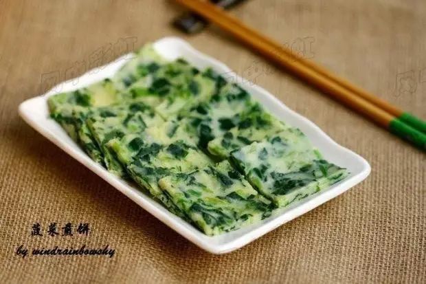 面粉50克、菠菜1小把、鸡蛋1个 =步骤= ❶ 菠菜洗净,用沸水焯烫后捞出晾凉。 ❷ 挤去水分,切碎。 ❸ 将面粉、鸡蛋、菠菜碎倒入大碗中。 ❹ 加入适量水,调入少许盐和香油,调成均匀的稀面糊。 ❺ 平底锅烧热,倒入薄薄一层油,将面糊倒入,摊成圆形。 ❻ 待面糊凝固、可以移动时,将面饼翻个面,将煎饼煎熟即可。