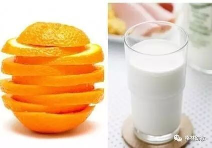 近年来科学家们发现,萝卜等十字花科蔬菜进入人体后,经代谢很快就会产生一种抗甲状 腺的物质----—硫氰酸。该物质产生的多少与摄入量成正比。此时,如果摄入含大量植物色素的水果如橘子、梨、苹果、葡萄等,这些水果中的类黄酮物质在肠道被细菌分解,转化成羟苯甲酸及阿魏酸,它们可加强硫氰酸抑制甲状腺的作用,从而诱发或导致甲状腺肿。 (9)牛奶与橘子同食: