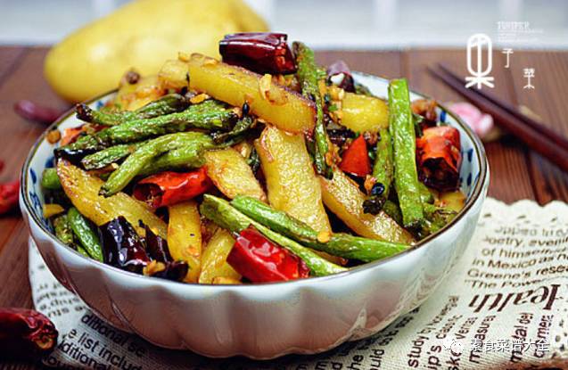 食材:土豆250g、豇豆150g、姜5g、花椒2g、干辣椒10g、味极鲜酱油1大匙、料酒1大匙、糖1茶匙、盐1/4茶匙做法: