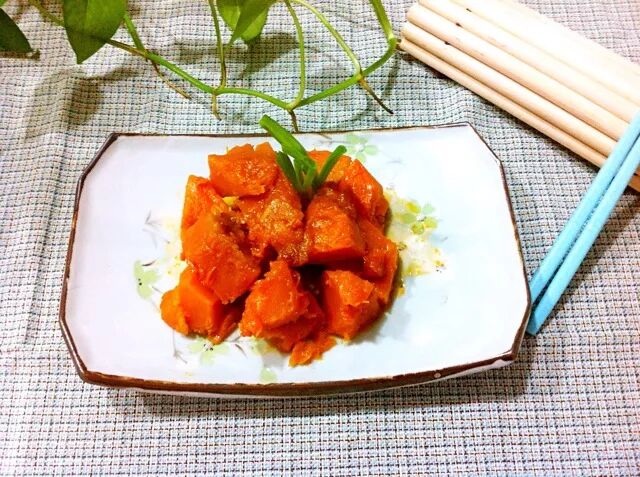 步 骤: 1、将南瓜削皮切小块。 2、炒锅放入油爆香豆豉。 3、放入南瓜爆炒。 4、加入适量的清水,焖片刻。 5、下盐调味即可盛碟。