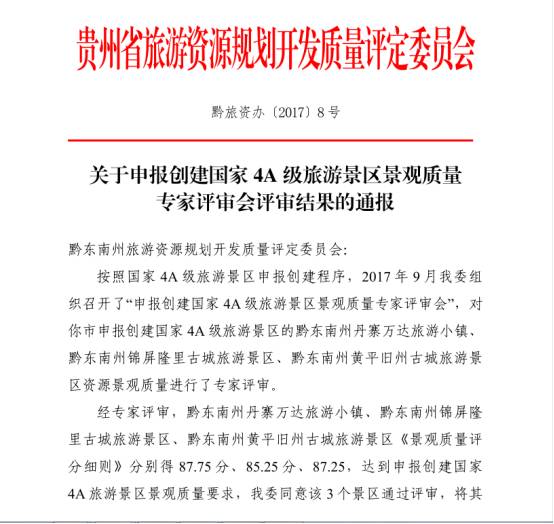厉害了,黄平旧州古城景区通过4A级景区景观质量评审!!! |