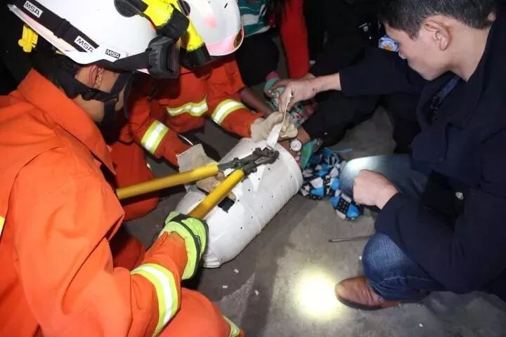 根据现场情况,为了防止用大的救援工具伤着小男孩,消防官兵只能用小钳子一点一点剪开甩干桶。经过大约20分钟的紧急破拆,成功将小男孩救出,所幸毫发无损。