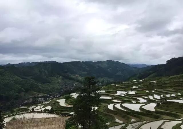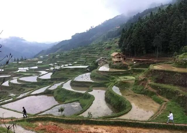 黔东南州黎平县尚重镇洋洞坳,四面是翠绿的青山,依山而建的梯田 |