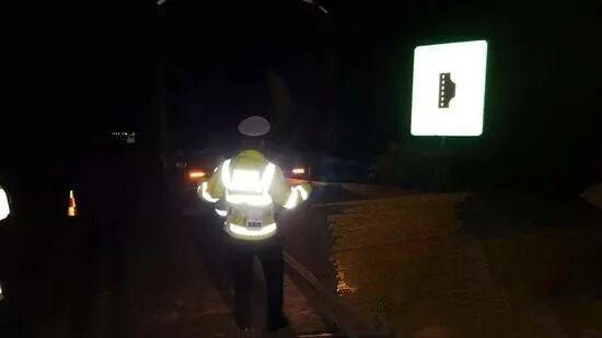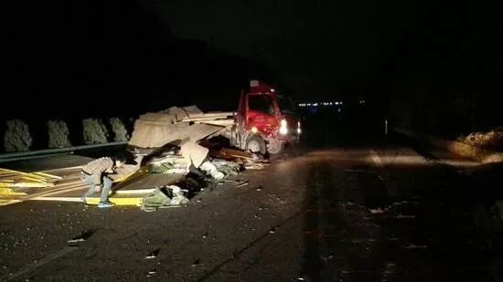 [【微信新闻】] 货车爆胎横置高速 交警连夜救援搬木板 |