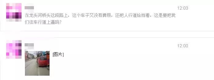 [【微友吐槽】] 【微友吐槽】这辆车子又没有牌照还把人行道给挡着,这是要把人往车行道上逼吗? |