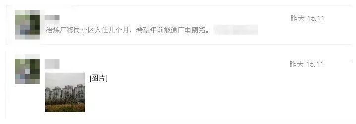 小编转述微友原话:“冶炼厂移民小区入住几个月,希望年前能通广电网络。”