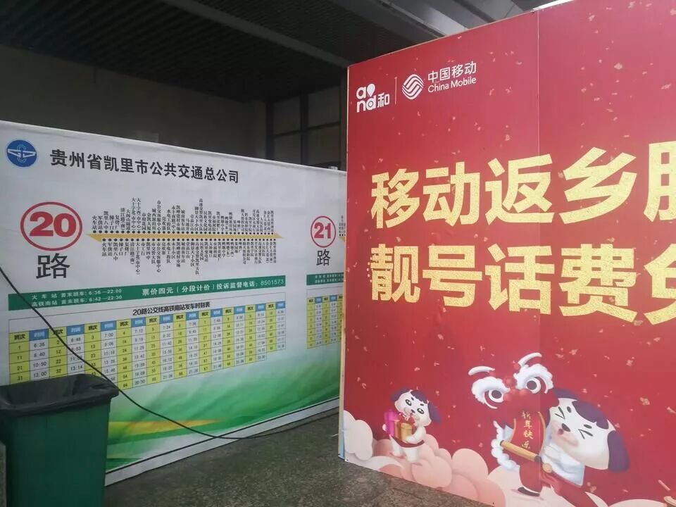 小编转述微友原话:“凯里高铁被中国移动占道,游客、市民无法看到公交车线路!”