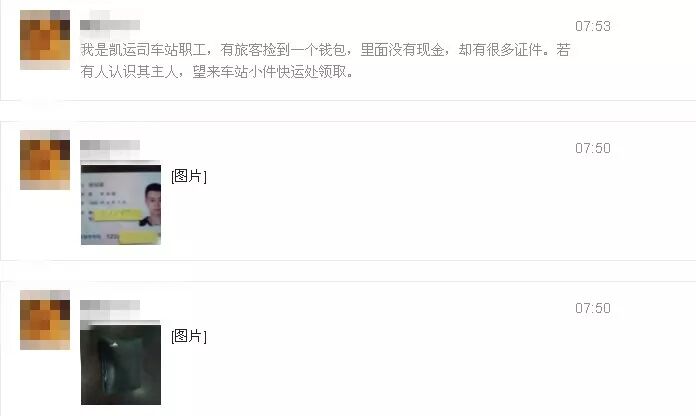 小编转述微友原话:“我是凯运司车站职工,有旅客捡到一个钱包,里面没有现金,却有很多证件。若有人认识其主人,望来车站小件快运处领取。”