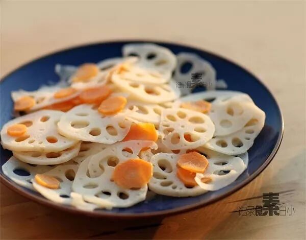 步骤: 1、莲藕洗净去皮切薄片,浸泡在水中去掉多余淀粉。胡萝卜切片 2、烧开一锅水,下入藕片烫至水再次开起,捞出过凉水后沥干水分 3、起锅下薄油,下胡萝卜片炒香,下入藕片,倒入盐和白糖快炒 4、加白醋略翻一下关火出锅
