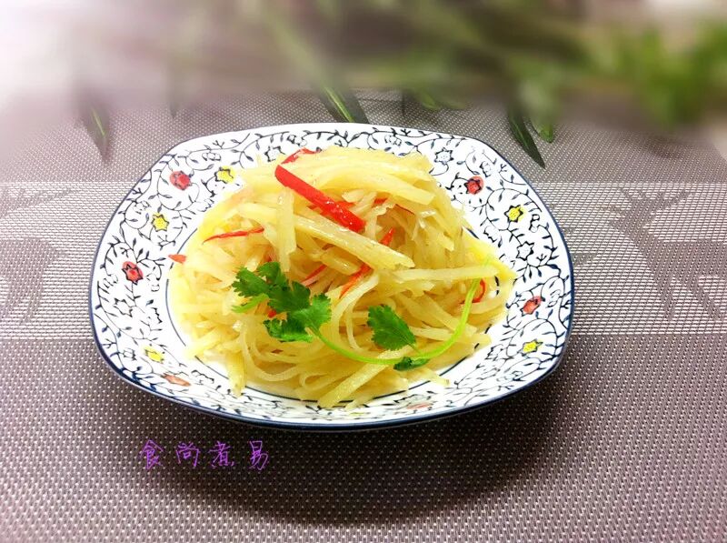 步骤: 1、土豆去皮切丝或擦丝,清水洗一下,浸泡五分钟 2、红椒切丝 3、热油加入土豆丝,翻炒 4、加入适量的盐,继续翻炒 5、再加入红椒,继续翻炒 6、加入适量的酱油,继续翻炒 7、出锅前,加入白醋,翻炒