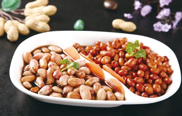 将花生米(连红衣)泡在陈醋中1周后,每天吃5~10颗即可。 花生米含有人体所需要的不饱和脂肪酸,但脂类含量高、热量大、有油腻感。而醋中的多种有机酸恰解腻生香,因此醋泡花生可降低血压,软化血管。