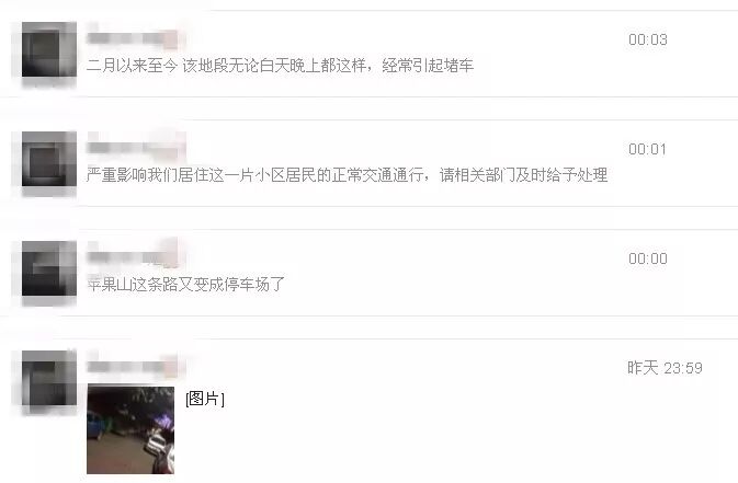 [【微友吐槽】] 【微友吐槽】苹果山这条路变成停车场,严重影响我们居住通行... |