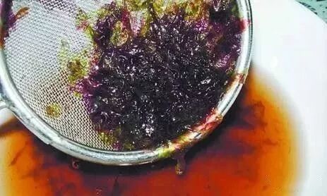 若凉水浸泡后的紫菜呈蓝紫色,说明紫菜在干燥、包装前已被有所污染,这种紫菜对人体有害,不能食用。