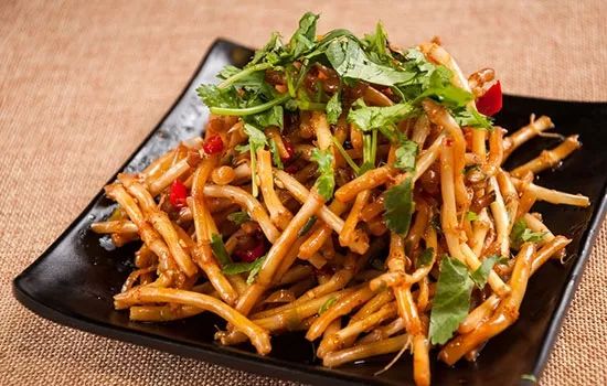 2、凉拌鱼腥草 【原料】主料:鱼腥草250 克。调料:精盐、味精、花椒粉、辣椒油、白糖。 【制法】将鱼腥草去杂洗净,切成段,再用盐水泡几分钟,放味精、精盐、花椒粉、辣椒油、白糖,拌匀即可上桌。 【功效】鱼腥草具有清热解毒、利尿消肿的功效。做成凉拌菜对上呼吸道感染、肺脓疡、尿路炎症、乳腺炎、蜂窝组织炎、中耳炎、肠炎等有一定疗效。 【提示】鱼腥草性寒不宜多食。