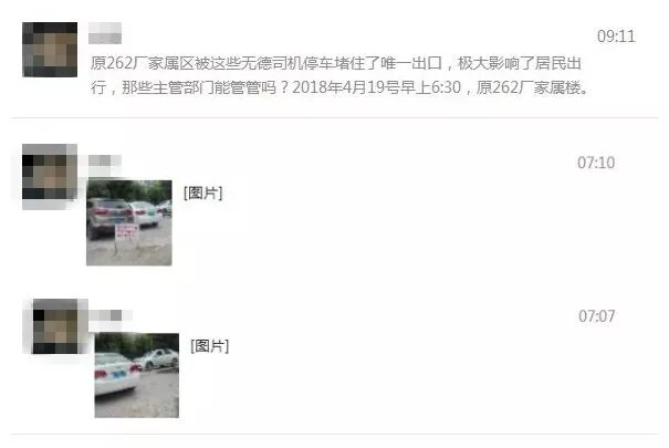 小编转述微友原话:“原262厂家属区被这些无德司机停车堵住了唯一出口,极大影响了居民出行,那些主管部门能管管吗?2018年4月19号早上6:30,原262厂家属楼。”