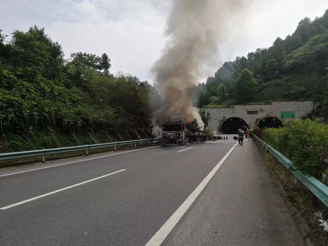 [【微信新闻】] 泸昆高速路上一辆拖挂货车行驶过程中自燃 消防官兵迅速救援 |