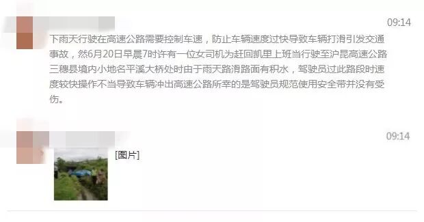 [【微信新闻】] 下雨天心急女司机急赶上班 车速较快最后飞入沟沟头