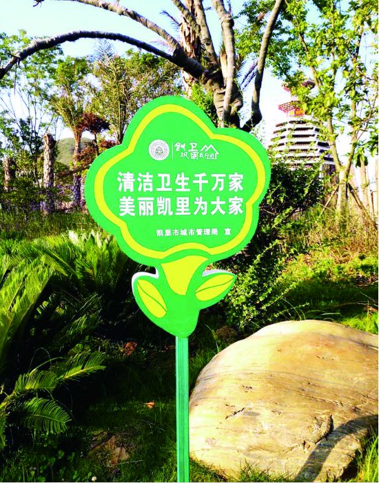 出了高铁南站,眼前宽阔的广场,鲜花怒放、绿植整齐,向右往公交车站行走,便可以看到不远处“创卫巩固”大型户外广告宣传语,还有公交车门张贴的“垃圾不落地, 凯里更美丽”的温馨提示,给人留下了深刻印象。  近日,长期在贵阳工作的 凯里人吴先生回到家乡,由衷地感叹凯里既美丽又干净,过马路很有安全感。吴先生说:“我在高铁南站风雨桥拿手抚摸座椅,干干净净,便能亲切地感受到凯里发生的变化,还是我们家乡好啊!”