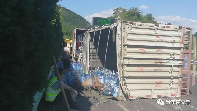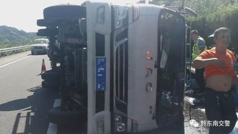 7月11日中午1点30分左右,黔东南州交警支队高速一大队值班室接到报警电话称,在沪昆高速贵阳往凯里方向1698km+800m处,一辆满载货物的厢式货车发生侧翻,占据超车道。