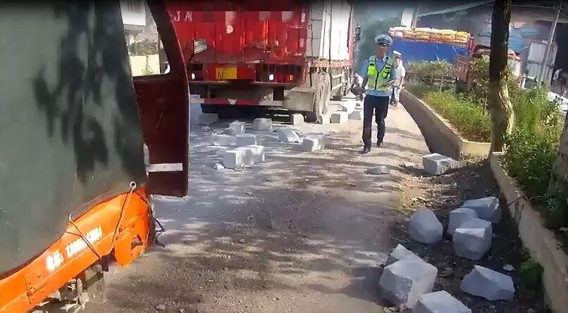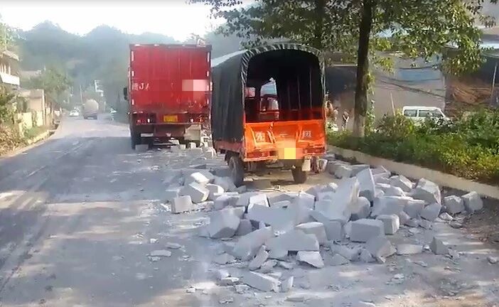 近日,一辆载有工程砖的货车在三穗县八弓镇寨吿路段一弯道处违法超车时,车上运载的砖块滑落,导致两人受轻伤一辆三轮车受损。 事故发生后,三穗县交警大队民警迅速赶到事故现场进行勘察,在事故现场民警看到,一辆贵J号牌的重型货车停在道路边上,后方停有一辆三轮车,周围全是货车上洒落下来的工程砖,三轮的车头和车厢都有严重凹陷损坏。事故中三轮车驾驶员和一名行人被砸伤。