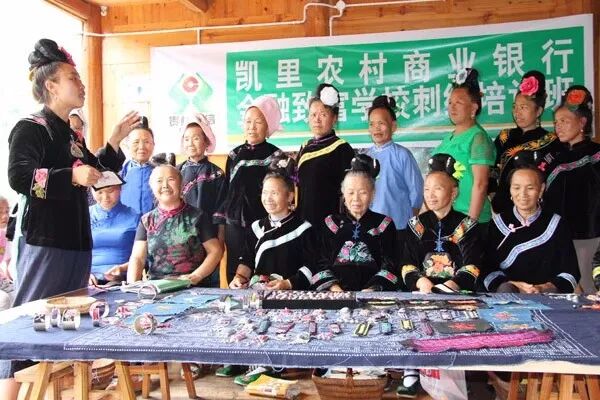 2018年8月21日下午,贵州凯里农商银行排乐支行根据总行制定的农村金融致富学校实施方案,在季刀苗寨的苗绣馆举办了第一期金融致富学校刺绣培训班。排乐支行专门请到当地苗绣传承人陈琴来上刺绣课,参加培训的学员共有25人,全是寨中妇女,年龄最大的有80岁、最小的20多岁。陈琴自2007年就推广苗绣,多次传授村民最新的刺绣针法,曾被评为黔东南州致富带头人。在开班仪式上,贵州凯里农商银行党委委员、副行长石磊将“凯里农村商业银行农村金融致富学校培训基地”的牌匾郑重地交到陈琴的手中。