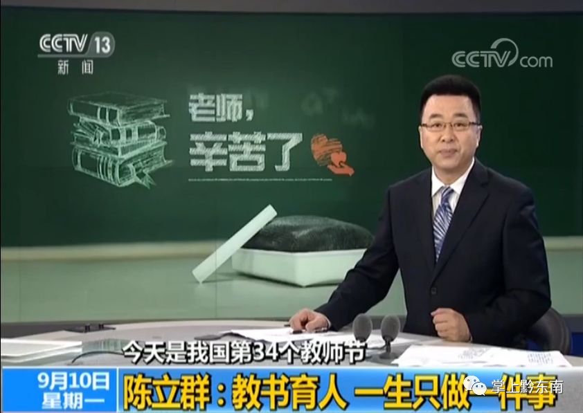教师节今天是我国第34个教师节,黔东南州两名教师的先进事迹先后被CCTV—13报道,一篇为《【新闻直播间】陈立群:教书育人 一生只做一件事》;另一篇是《【朝闻天下】贵州丹寨 大山深处乡村教学点的守护者》。让我们一起来看两位老师的先进事迹吧!