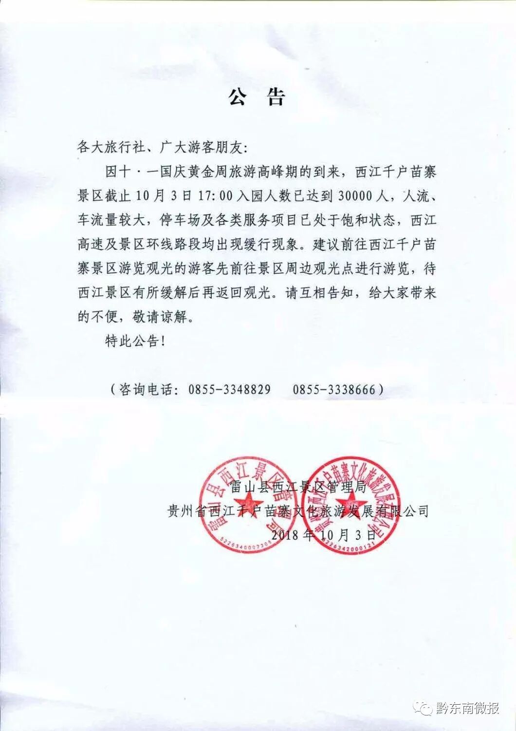 [【微信新闻】] 西江苗寨游客超多,不得不发布旅游预警 |