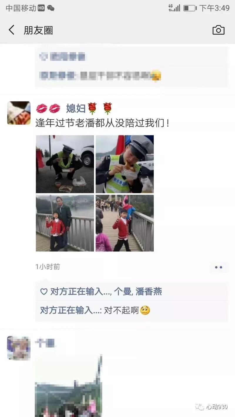 今年“五一”假期,已经上一年级的小潘让妈妈带自己去丹寨万达小镇玩,他告诉妈妈,“这样就能让爸爸陪自己玩啦。”但是这一次小潘还是失望了,因为今年"五一”假期正逢丹寨龙泉山上杜鹃花盛开,万达小镇新开许多游乐项目,仅"五一”当天,就有接近三万多辆自驾游车辆通过高速公路涌入丹寨县城。潘存富和同事们从早忙到晚,都顾不上吃饭!虽然今天(5月2日)车流量相比前一天稍少一些,但是为了能让自驾游游客第一时间到达目的地,辖区道路有一个良好的交通秩序,潘存富和同事们不敢有一丝懈怠,始终坚守在自己的岗点上。就算小潘已经和家人们到达了万达小镇游玩,仅管他们只相距短短1公里的距离,潘存富依然不能前往陪同家人,当一家人游玩结束后,便有了那张“缺少”爸爸的旅游纪念照。最后,在离开丹寨时,小潘还是如愿的见到了爸爸,因为不能耽误工作,父子俩只相聚了短短的5分钟。分别时,小潘恭恭敬敬地向爸爸敬了一个礼后,便和妈妈依依不舍地离开了丹寨。目送亲人们离开时,潘存富的眼里充满了对孩子和妻子的愧疚。