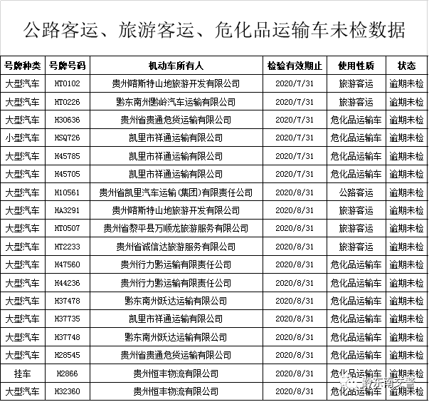 [【微信新闻】] 关于黔东南州重点车辆逾期未检验提醒的公告 |