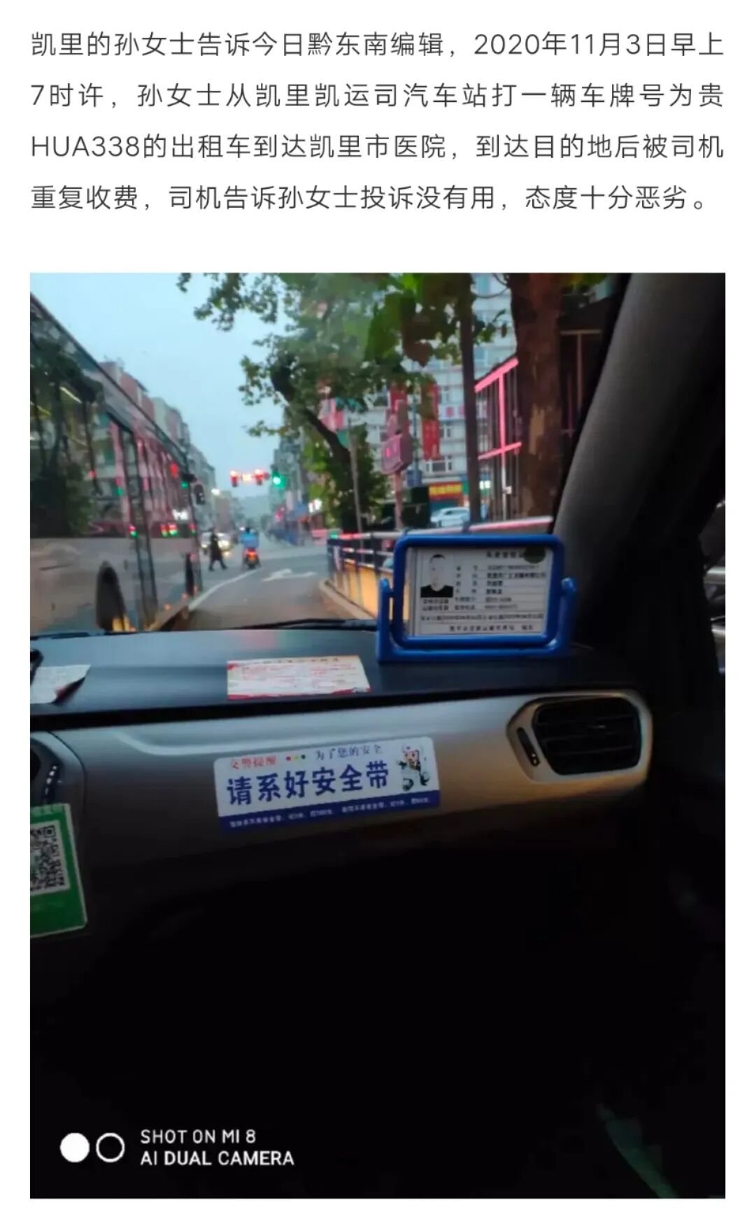 [【微信新闻】] 凯里这个出租车司机,重复收费还跟乘客说投诉无效