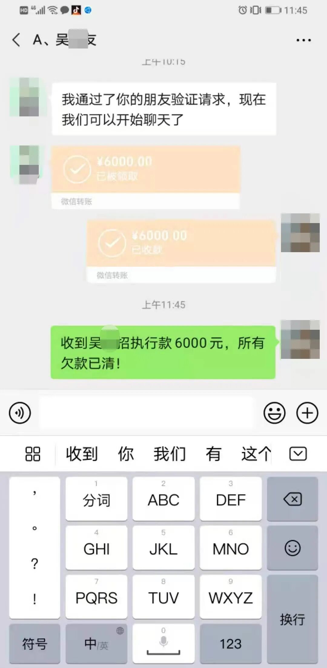 在执行法官和申请人的共同努力下,2020年11月17日执行法官电话联系到被执行人的儿子吴某友来到法院,吴某友表示其父去世后,并没有留下什么遗产给他,只留下去世前和其母亲共同向银行贷款债务20多万元,这个银行债务他现在一直还在替父亲偿还,而且林权是吴某招和吴某招弟弟共有,只是林权证上写的是吴某招名字。被执行人儿子吴某友对于本案债务是知晓的,也愿意帮父亲承担偿还责任,只是现在确实没有能力一次性支付本案执行款49325元,看到吴某友态度真诚,申请人黎平县某租赁部法定代表人提出,只要求吴某友一次性替父亲支付执行款6000元,剩余案款43325.00元自愿放弃。 吴某友当即表示同意,立即在法院办公室向亲朋好友凑钱将执行款6000元通过微信支付方式支付给申请人。