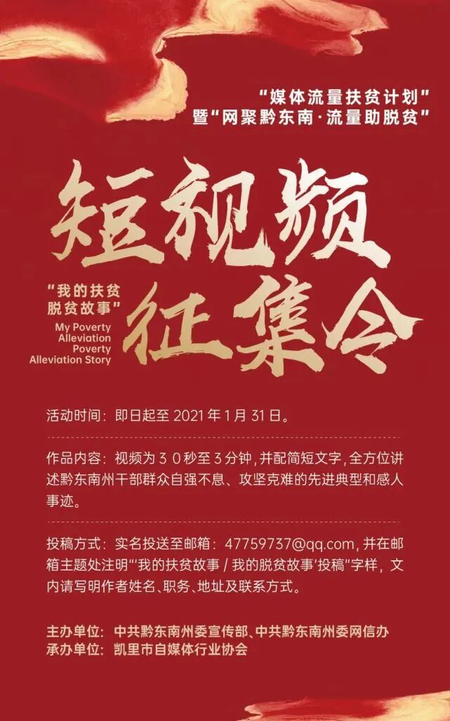 [【微信新闻】] “媒体流量扶贫计划”暨“网聚黔东南流量助脱贫”短视频征集令 |