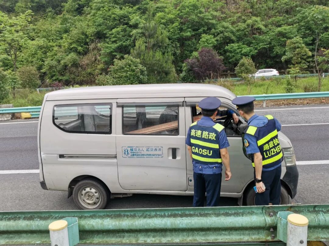 2021年5月4日16时30分凯里高速公路管理处榕江路政执法大队路政员在巡查过程中,发现一辆面包车在行车道上悠悠而行,全然不顾旁边呼啸而过的车流,路政员紧急处置,将安全事故扼杀于萌芽。
