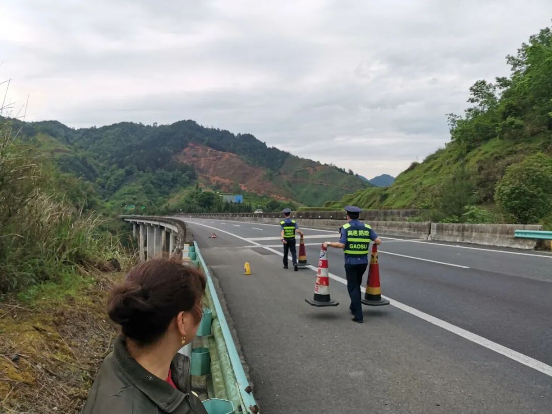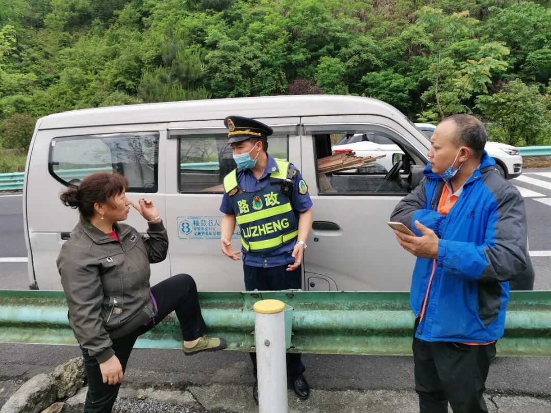 “五一”高速免通行费期间,G76厦蓉高速上川流不息。路政员在路面巡查中,时刻保持高度警觉,在巡查至水都段K1234+500(贵阳往广西方向)处,发现一辆面包车在行车道上缓慢行驶,与旁边呼啸而过的车流形成鲜明对比。眼看好几辆车即将追尾才紧急减速变道,现场险象环生,吓得路政员赶紧打开警报警示后车,同时用喊话器引导面包车往应急车道上停靠。在停好车后,路政员立即下车用安全锥做好警示,随后让面包车上的司乘人员撤到护栏外询问情况。