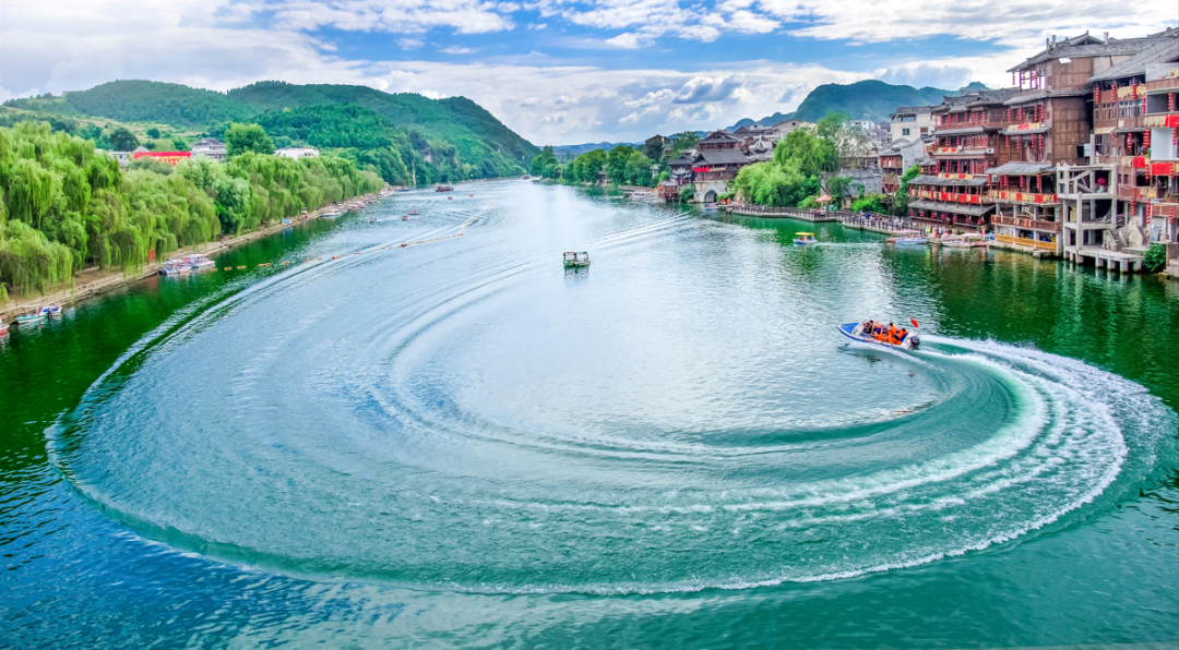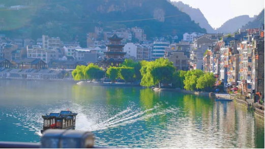 0 2 下司古镇  六月的下司古镇温和舒适,非常适合乘船出游 江水清幽两岸竹木葱葱,船行其间 鳞波倒映,船移景换 犹如一幅明丽清新的水墨画  呼吸自然的新鲜空气,拥抱花草的芳香, 还可以与小伙伴身着汉服徜徉在古色古香的街道上 让您在这个假期,成为朋友圈里“最靓的仔”!