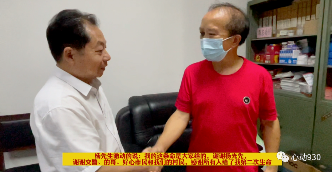 在得知杨先生中毒后,杨光先二话不说,立马下车开着杨先生的车载着杨先生、杨先生的妻子以及两位村民往城区医院赶去。期间,杨光先不断叮嘱杨先生的妻子,“你一定要跟他多说话,要喊他!唤醒他的意识!”