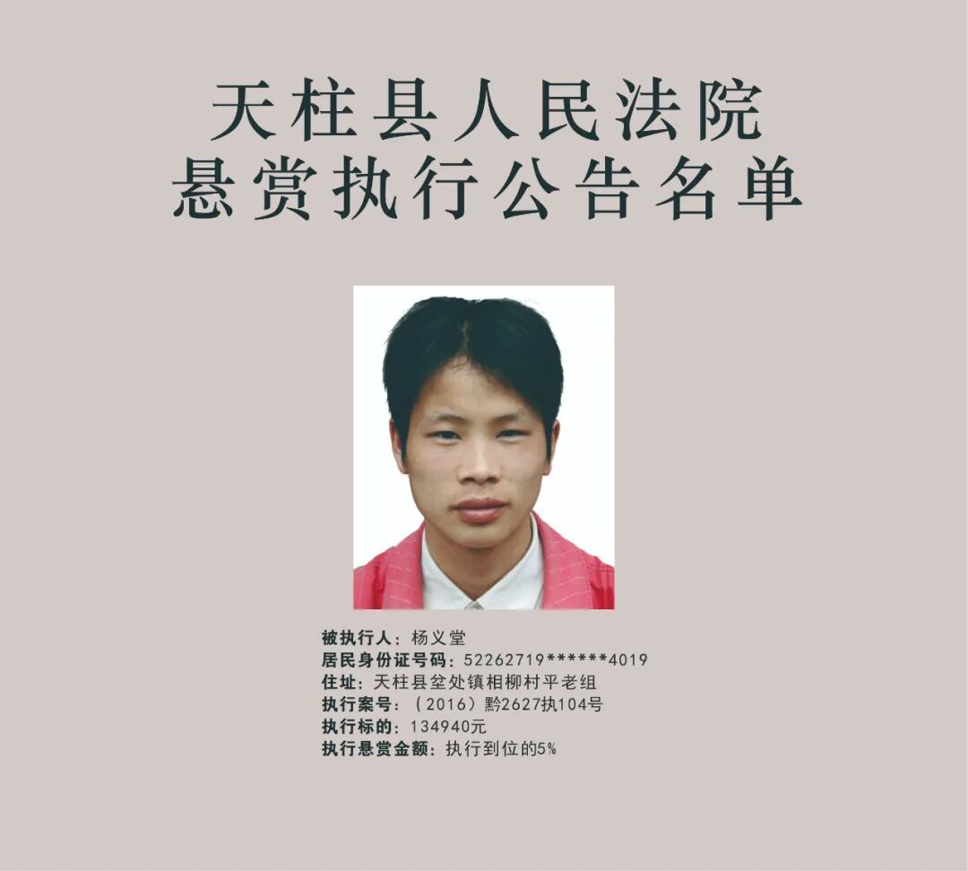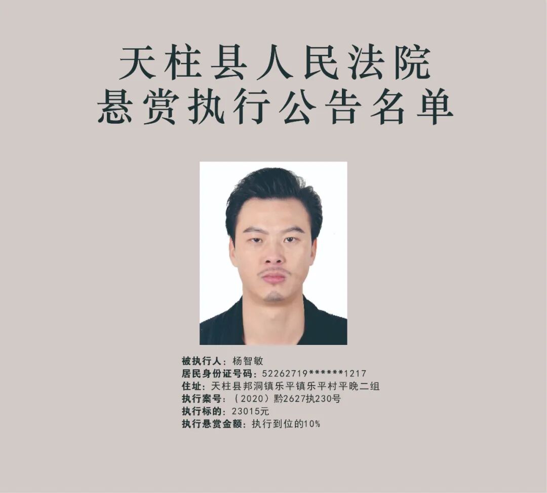 [【微信新闻】] 黔东南天柱县法院执行悬赏公告! |