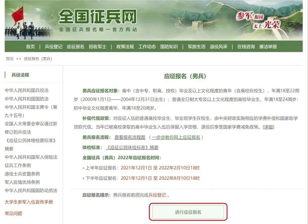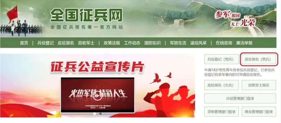 应征报名 1 报名时间 全国征兵网男兵应征报名窗口开通后下半年截止日期为8月10日18时。(男兵报名前须完成兵役登记) 2 报名渠道 1.可登录全国征兵网应征报名