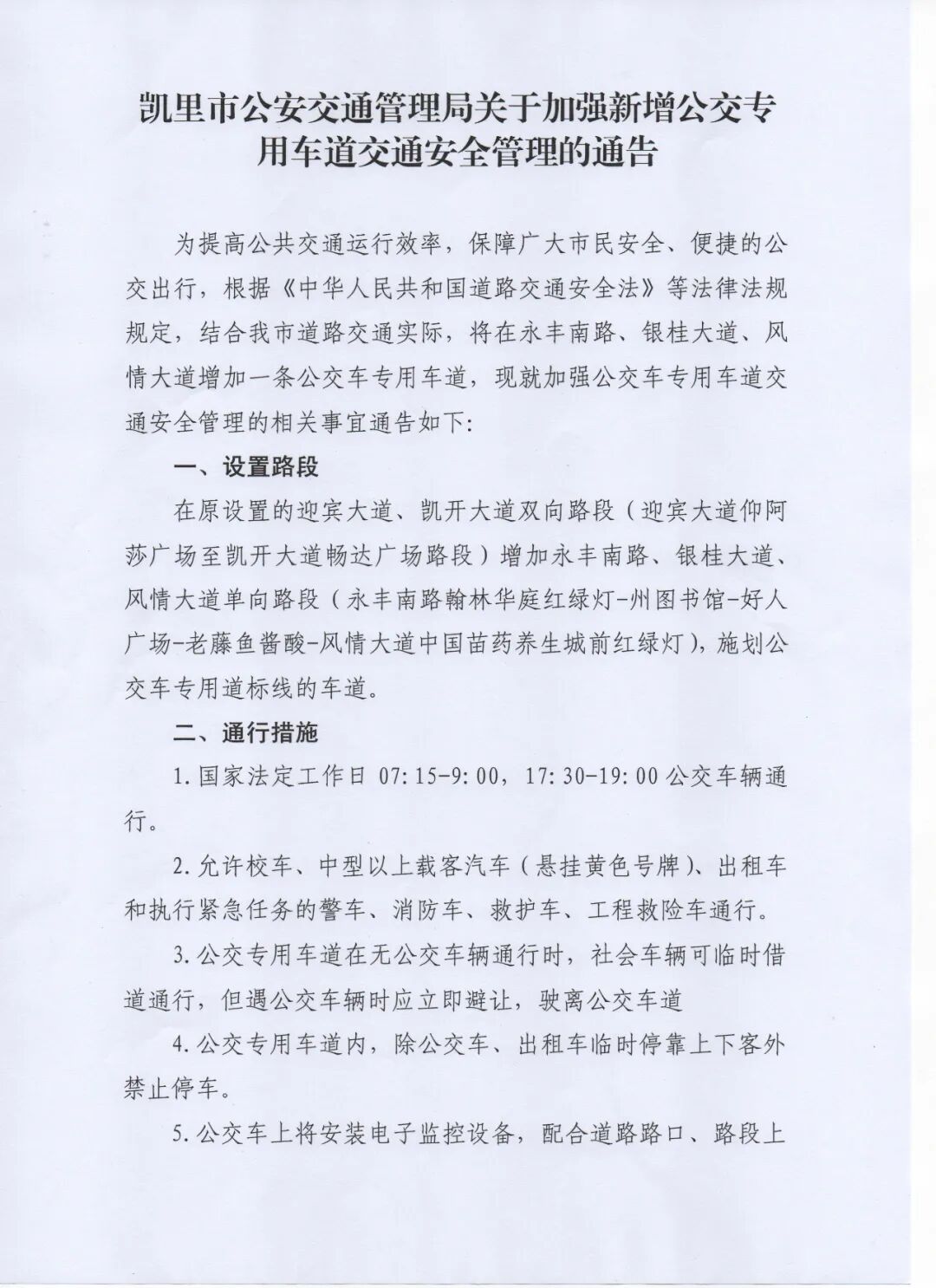 [【微信新闻】] 通告!凯里这些路段将新增公交专用车道 |