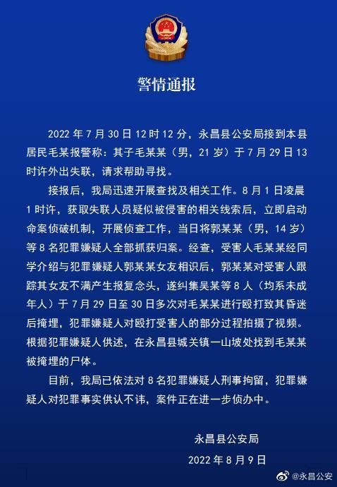 ​8月9日,据甘肃金昌市永昌县公安局通报: