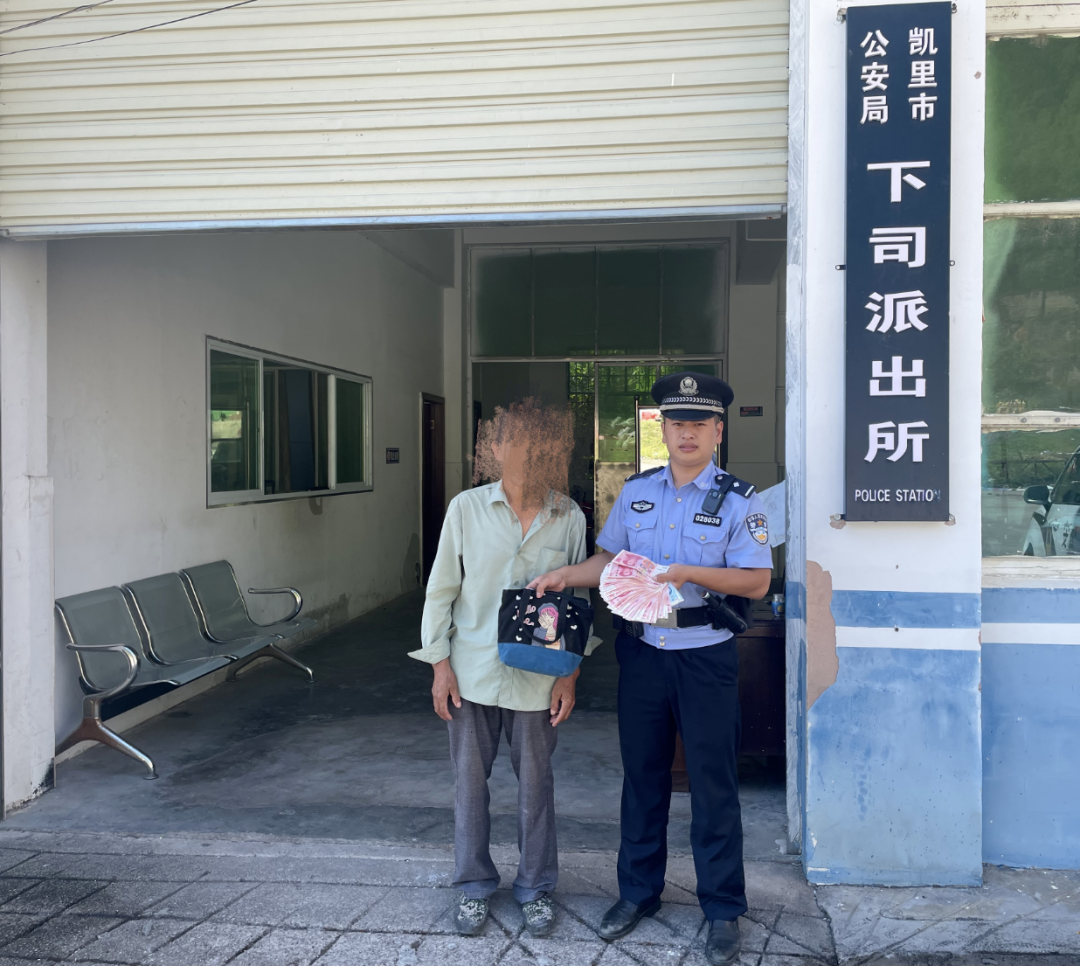 ​近日下午,黔东南州公安高新区分局接到群众报警称:其手提包在下司镇赶集时不慎丢失,手提包里面有现金7900元,银行卡2张、身份证1张等物品,民警按照王先生提供的线索,立即调取附近及沿途的监控视频,始终未发现线索。接着在走访周边群众时,有一女生找到民警,称其捡到一个包,找不到失主,民警看到此包和王先生描述丢失的手提包相似,民警立即联系王先生,在确定包里现金物品均未丢失、证件齐全后将其全部归还。